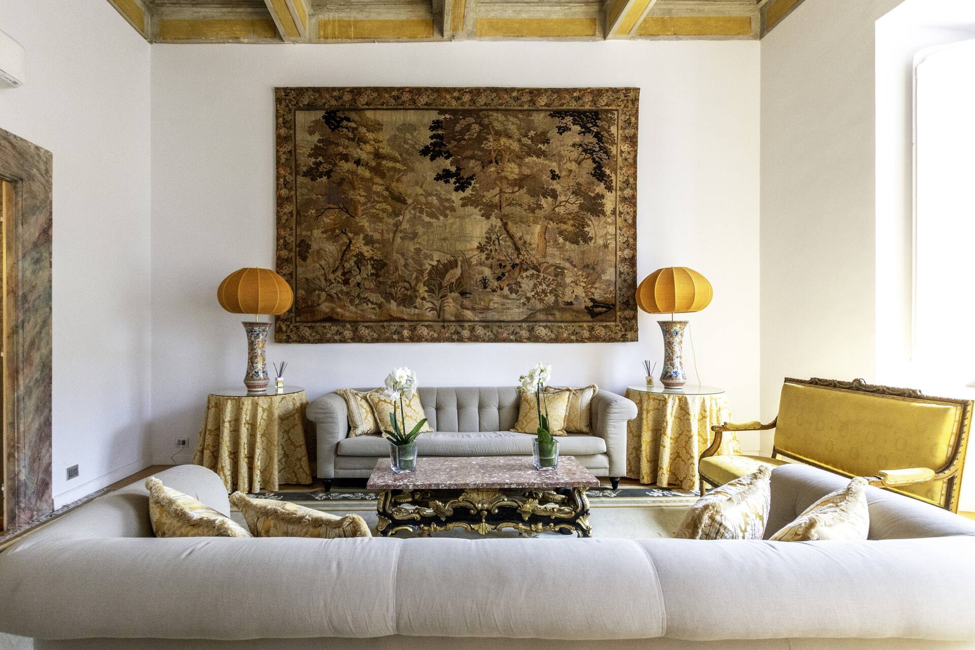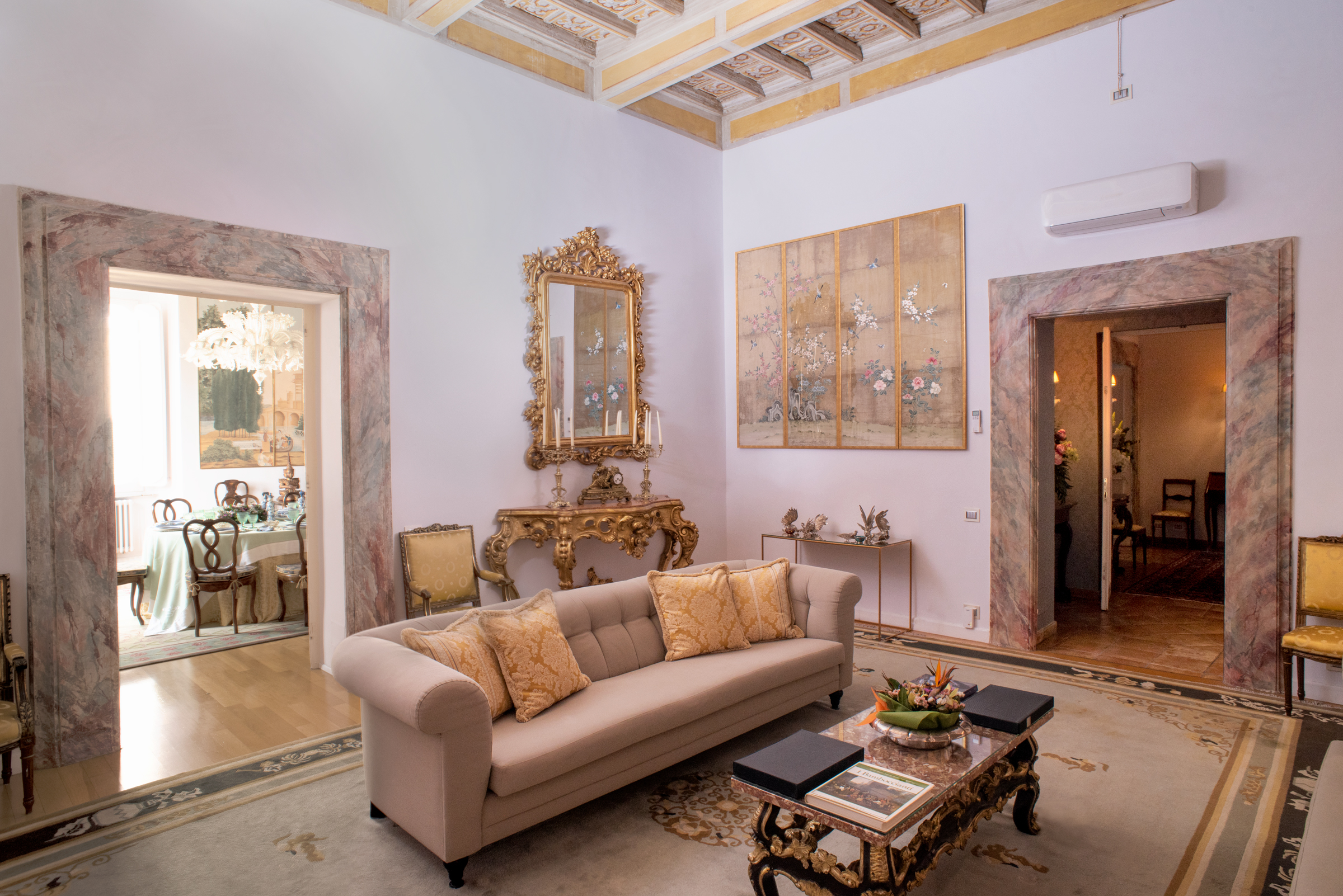 Located in the prestigious Farnese area, this luxury apartment in Rome historic center allows you to reach some of the city’s most iconic landmarks on foot.